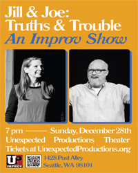 Unexpected Productions 1428 Post Alley at the Gum Wall in Pike Place Market, Seattle, WA, United StatesLooking for something fun to do after the holiday festivities? The presents are unwrapped, dinner is done, and the dishes are finally put away—now what? Join us at Unexpected Productions...